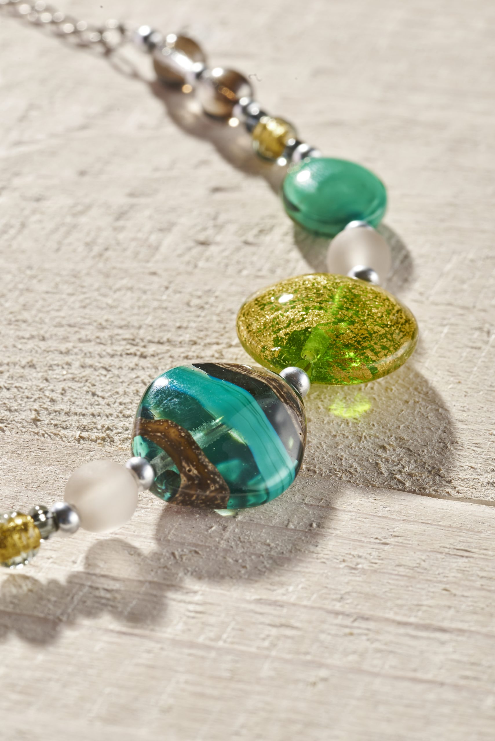 Antica Murrina sposa la tradizionale lavorazione a lume con un’attenta scelta dei colori e della foglia di metallo prezioso.